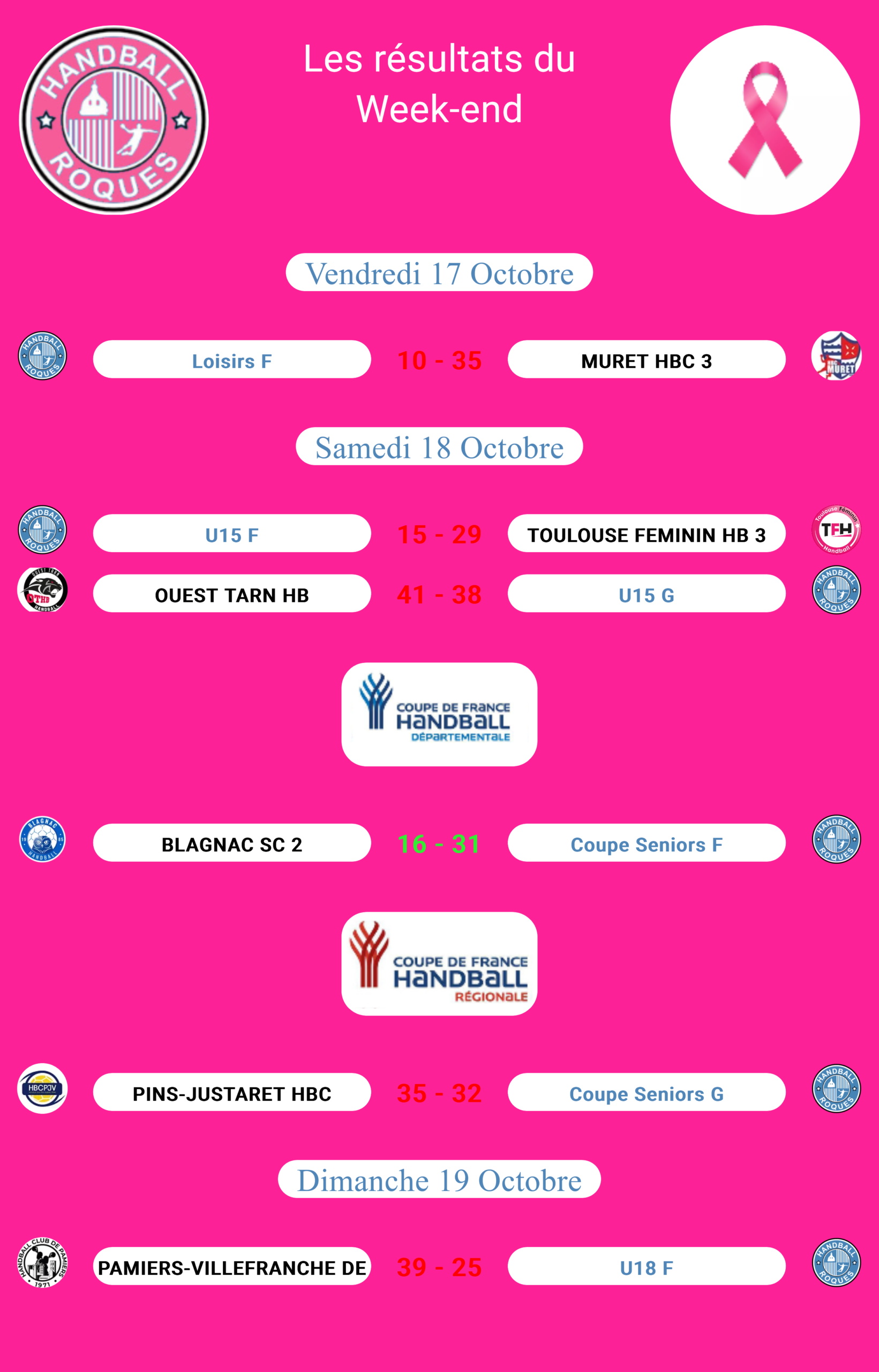 Résultats des matchs 20 octobre 2025 Non Par thierry.lagrange Partager sur Facebook Matchs du Week-end Programme de la semaine