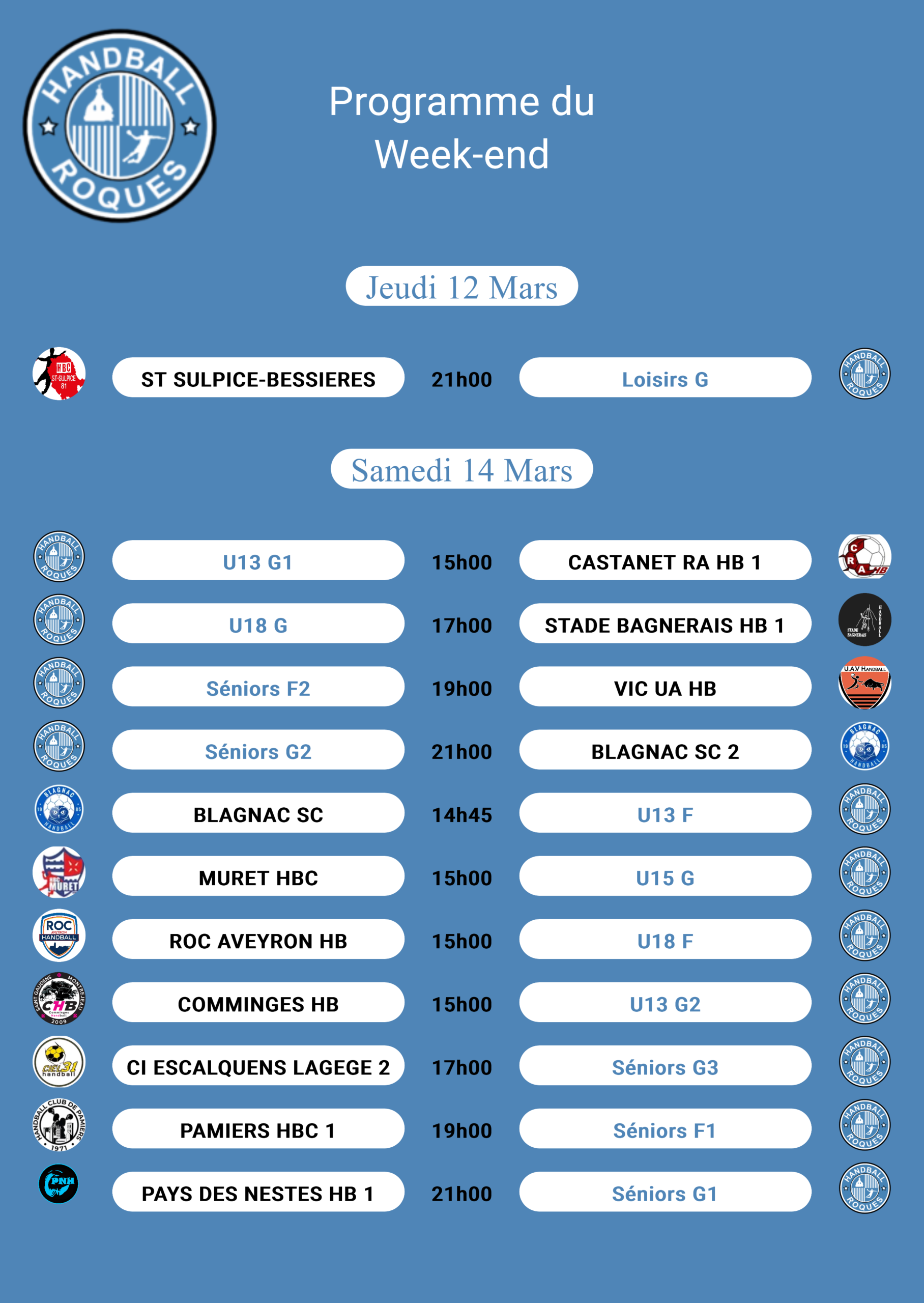 Matchs de la semaine 9 mars 2026 Non Par thierry.lagrange Partager sur Facebook La boutique INTERSPORT en ligne du HBC Roques est à nouveau active