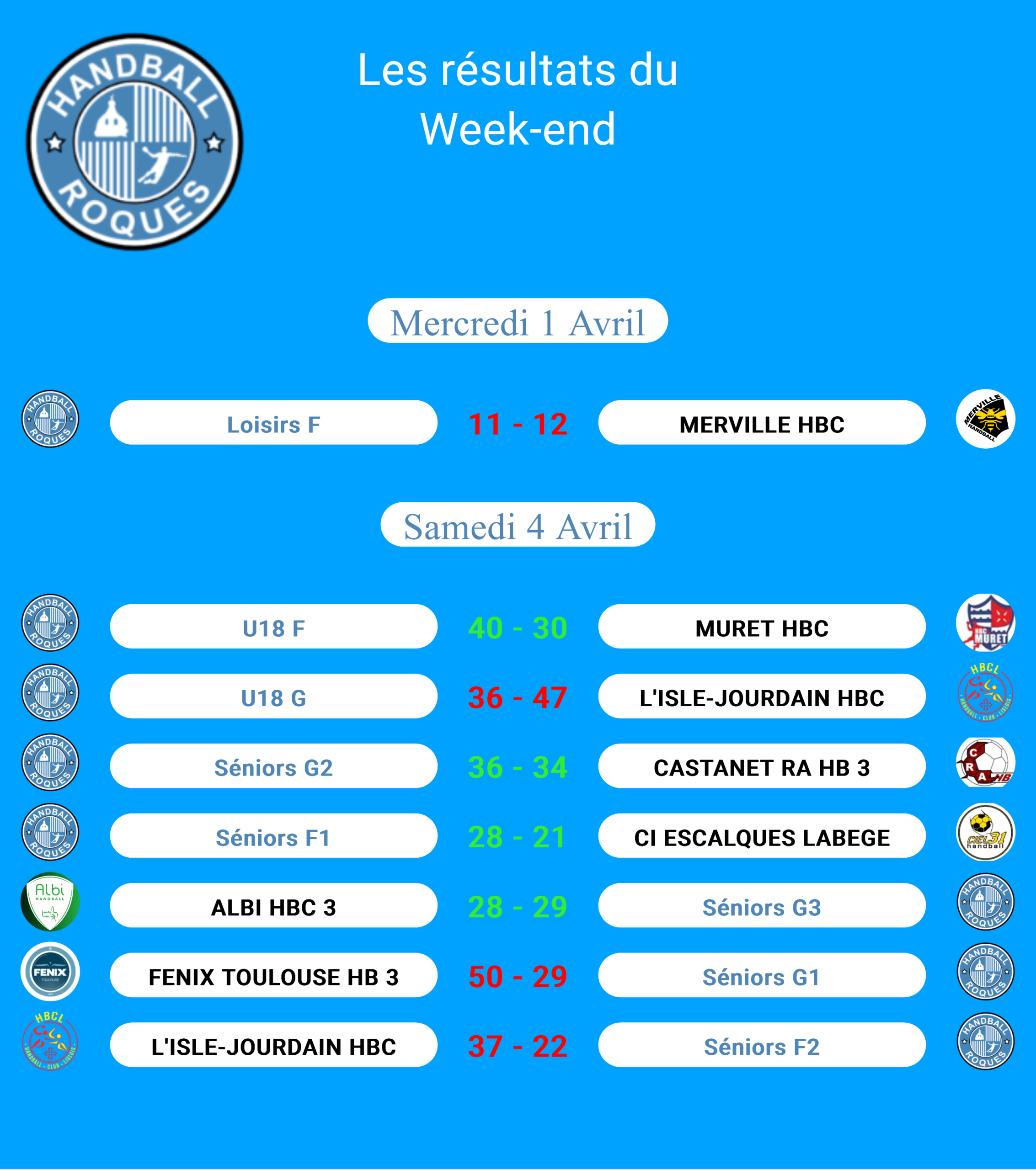 Résultats des matchs 7 avril 2026 Non Par thierry.lagrange Partager sur Facebook Programme des matchs