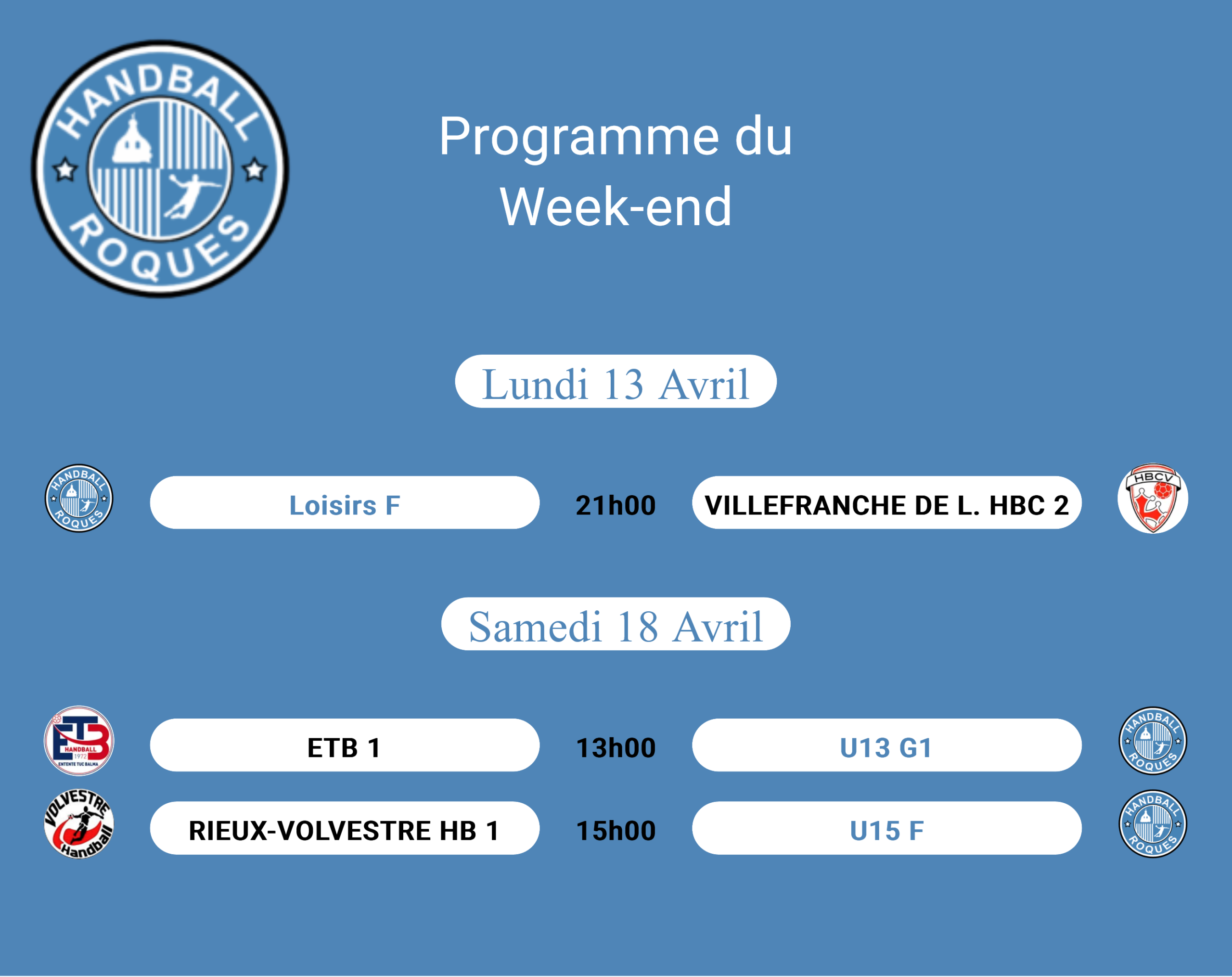 Programme des matchs 17 avril 2026 Non Par thierry.lagrange Partager sur Facebook Résultats des matchs